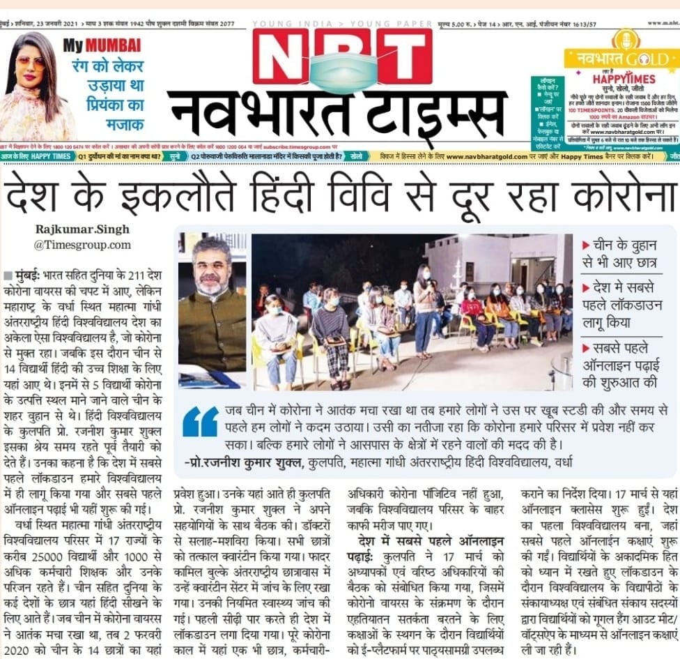 http://localhost:8080/xmlui/handle/123456789/270| Title: | देश के एकलौते हिंदी विश्वविद्यालय से दूर रहा कोरोना |